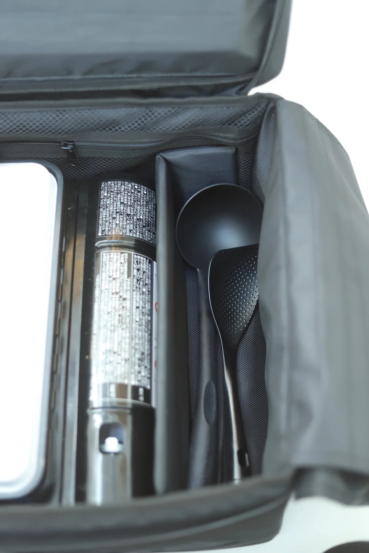 各社大型バーナーを収納でき、さらにガス缶やトングやフライ返しなど収納可能。